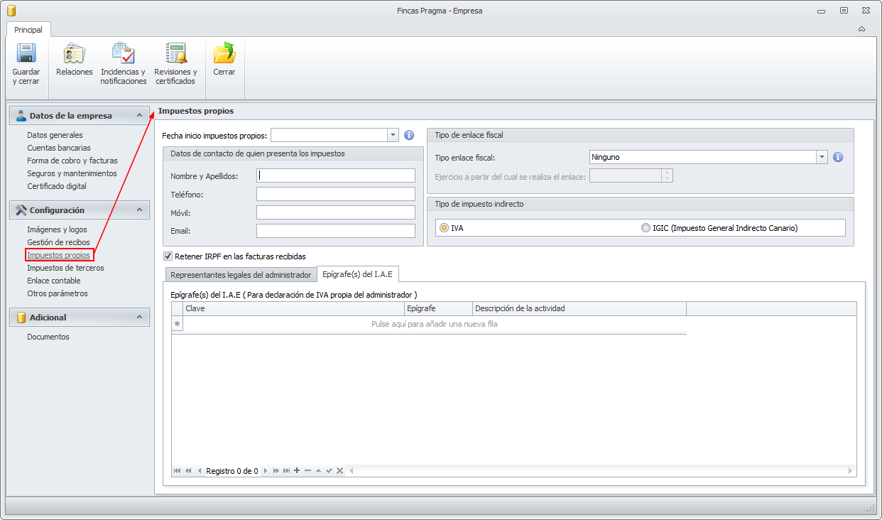 Se ha renombrado la sección Datos para impuestos por Impuestos propios.