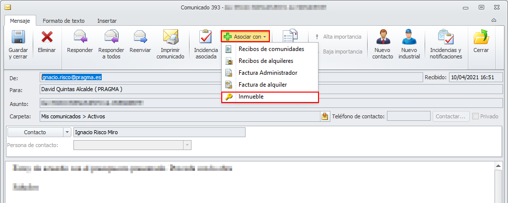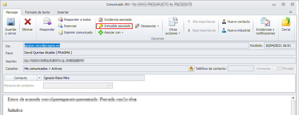 Desde la ficha de un comunicado o notificación asociada a un inmueble puede accederse a la ficha del inmueble.