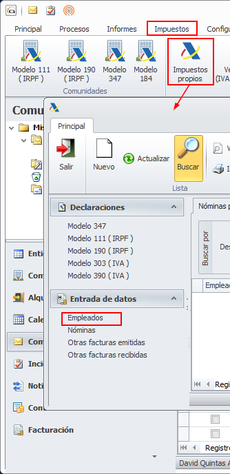 La sección Empleados, anteriormente formaba parte de los datos ubicados en el botón Impuestos de la ficha de empresa.