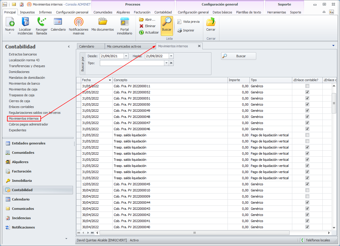 Los movimientos internos existen desde el inicio de adminet, pero no se podían consultar desde una vista propia sino a partir de los movimientos que los componían.