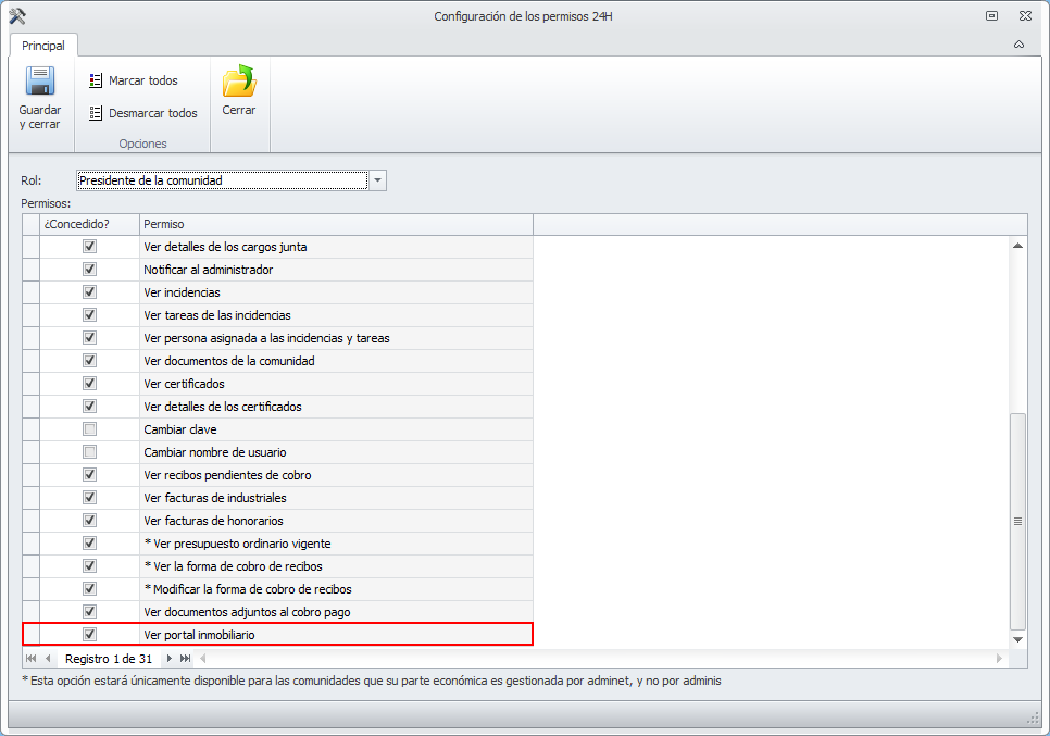 Se ha añadido un nuevo permiso para autorizar a todos los roles de usuarios de Admin24h App y Web a acceder al portal inmobiliario.