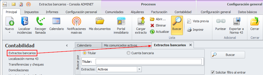 Se cambia el título “Extractos (Norma 43)” por “Extractos bancarios”