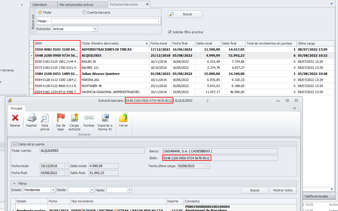 Mejoras en extractos bancarios de norma 43 (inclusión del IBAN)