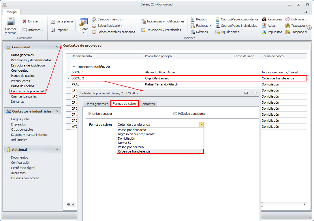 Esta pensada para cuando el propietario tiene programada una orden de transferencia periódica para pagar los recibos de la comunidad.