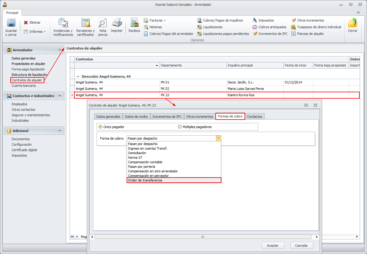 Haga clic aquí para más información sobre las formas de cobro de recibos de alquiler.