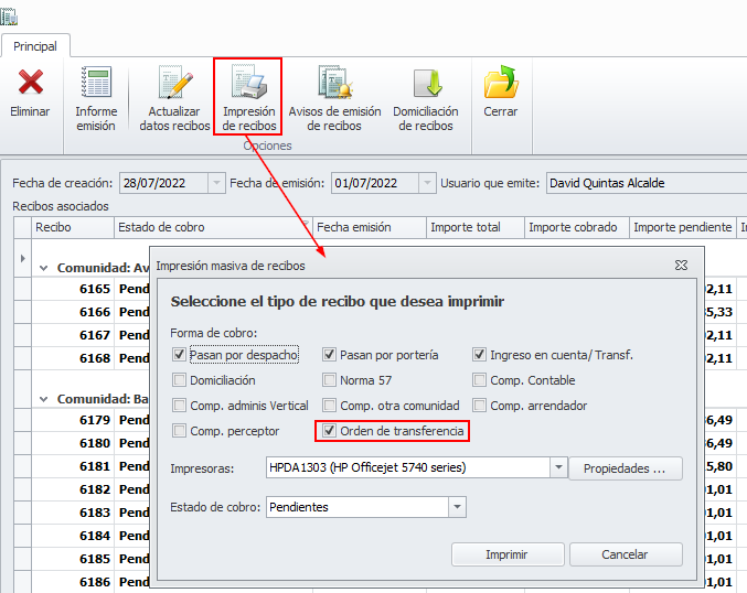 Orden de transferencia supone que el propietario tiene ordenado el pago periódico al administrador y por lo tanto puede omitirse, si se desea, la notificación de la emisión del recibo.