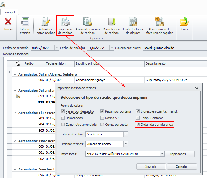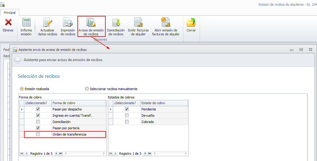Orden de transferencia supone que el inquilino tiene ordenado el pago periódico al administrador y por lo tanto puede omitirse, si se desea, la notificación de la emisión del recibo.