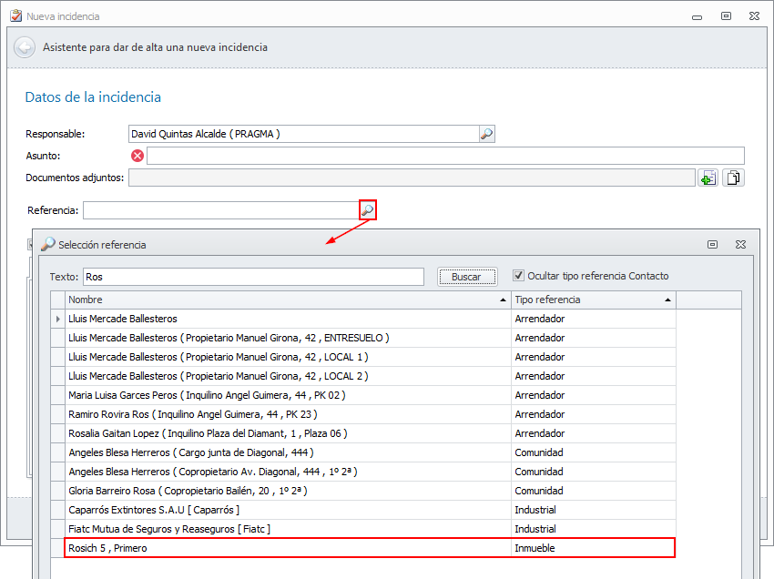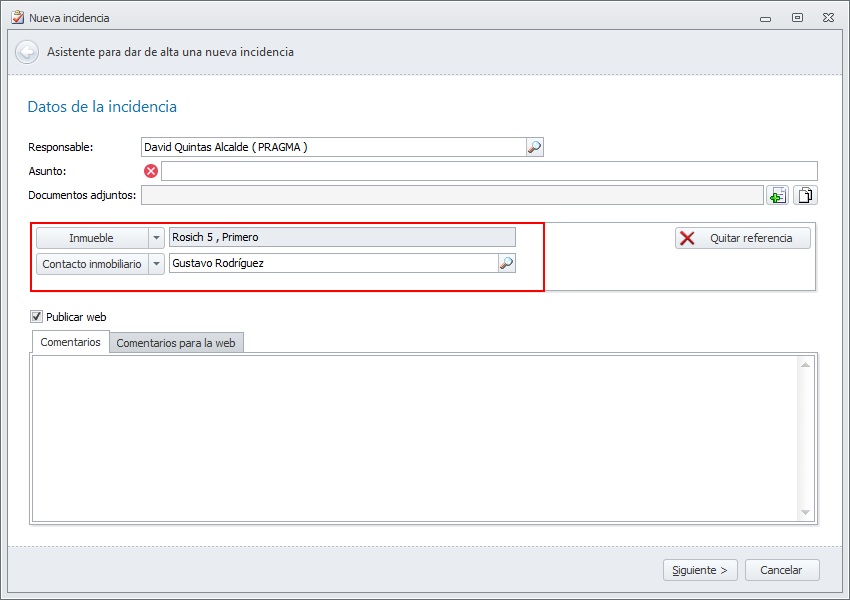 A la referencia que se puede vincular a un comunicado, incidencia, tarea, cita, revisión, notificación, etc. se le ha añadido la opción Inmueble.