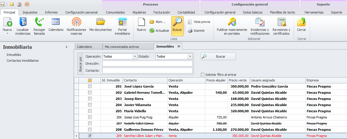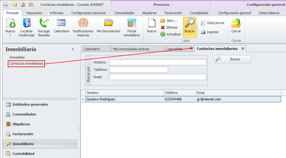 Se añade, en el apartado Inmobiliaria, una opción para guardar los contactos específicamente relacionados con los inmuebles que se comercializan.