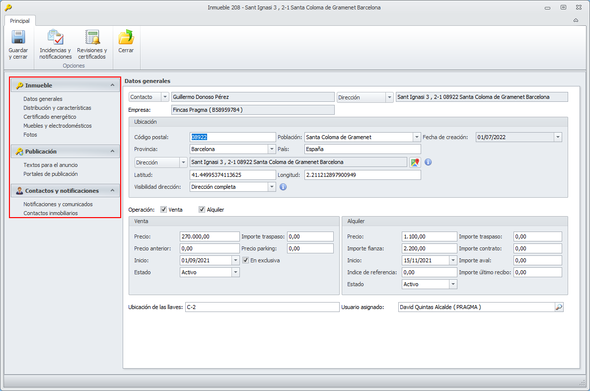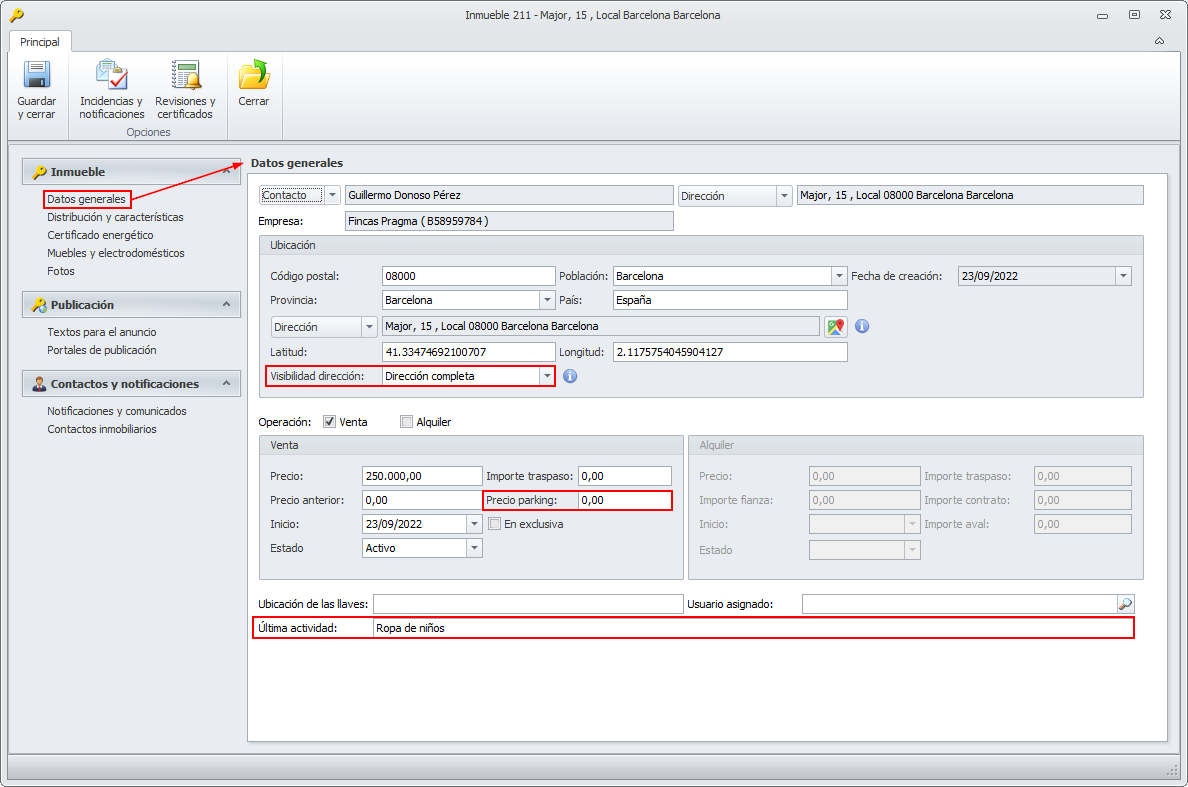 Los datos añadidos a la ficha del inmueble, son los siguientes: