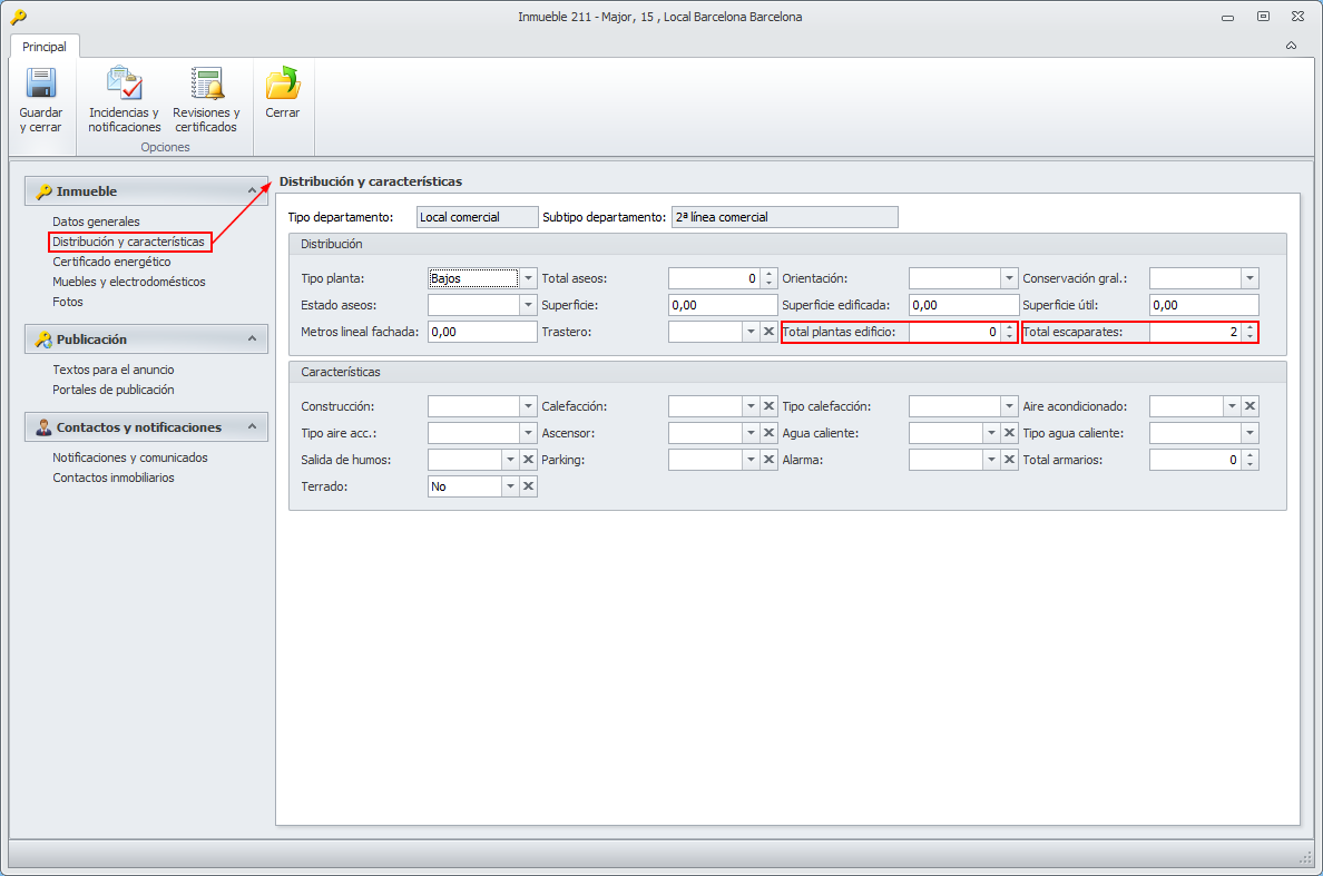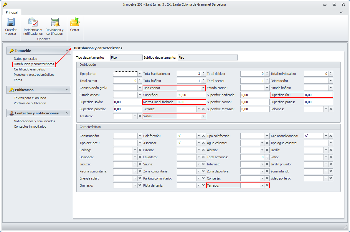 Se añaden nuevas características en la ficha de inmueble