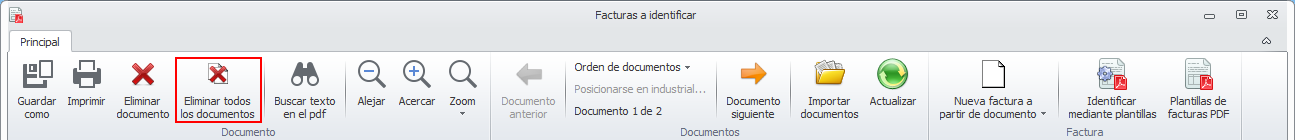 Nuevo botón “Eliminar todos los documentos” en Identificación de facturas