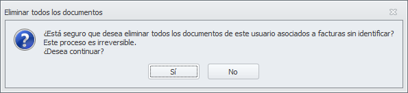 Si se pulsa, solicita autorización para eliminar todos los documentos guardados en la carpeta Facturas a identificar correspondientes a ese usuario.