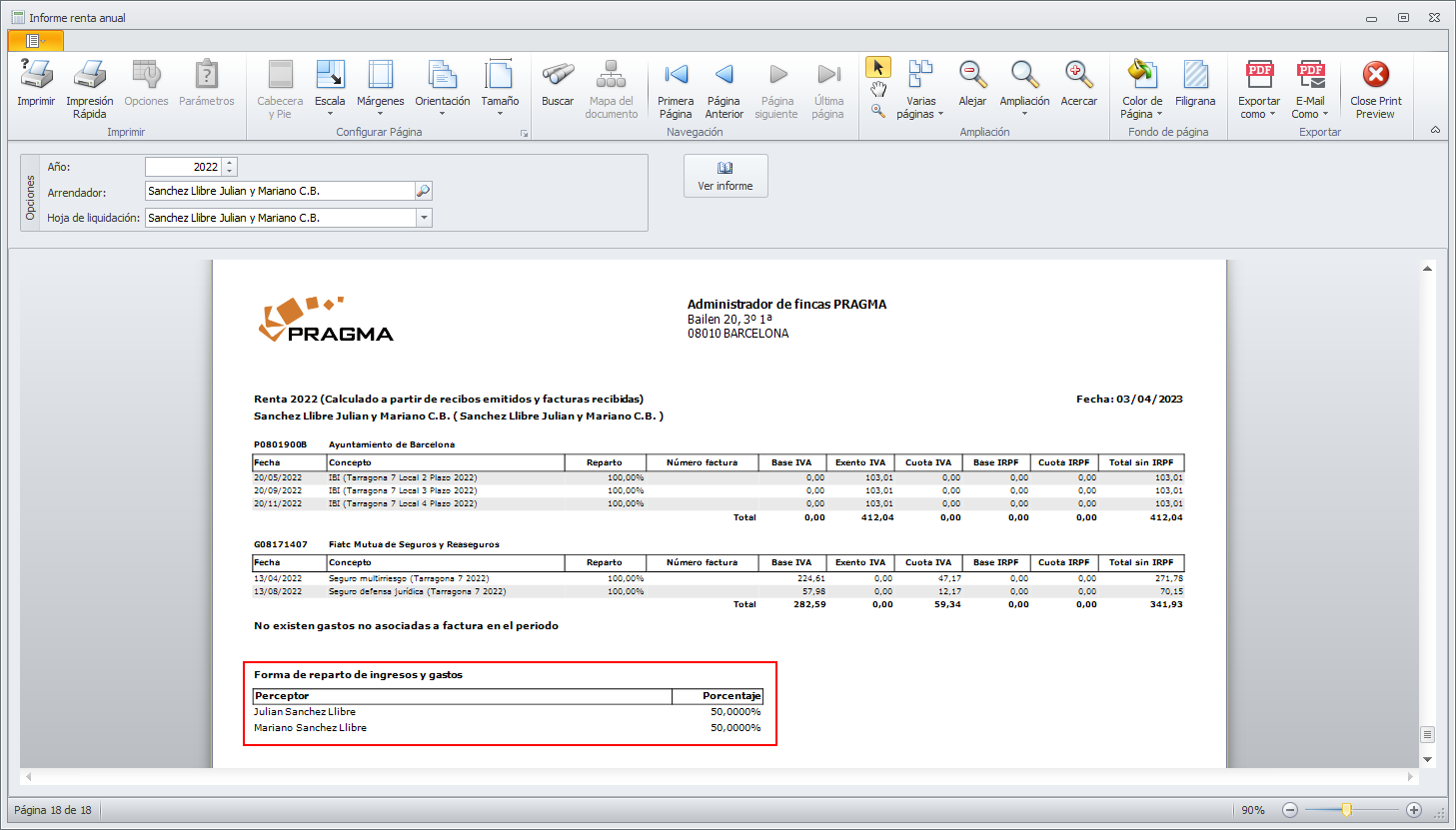 Reparto entre perceptores en informe de renta