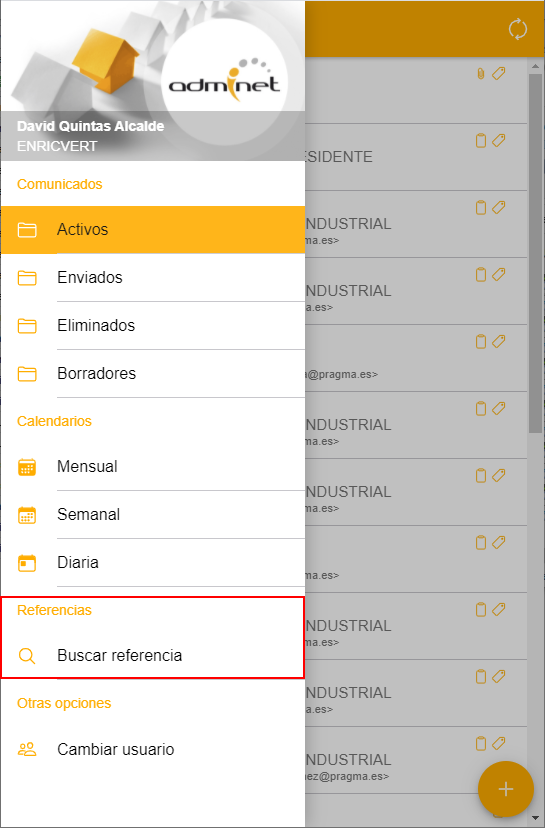 En ambos casos, desde la parte superior de la ficha de la referencia, puede abrir un menú de opciones relacionadas con ella. Estas opciones son sensiblemente diferentes dependiendo de si se trata de una comunidad de propietarios o de un arrendador.