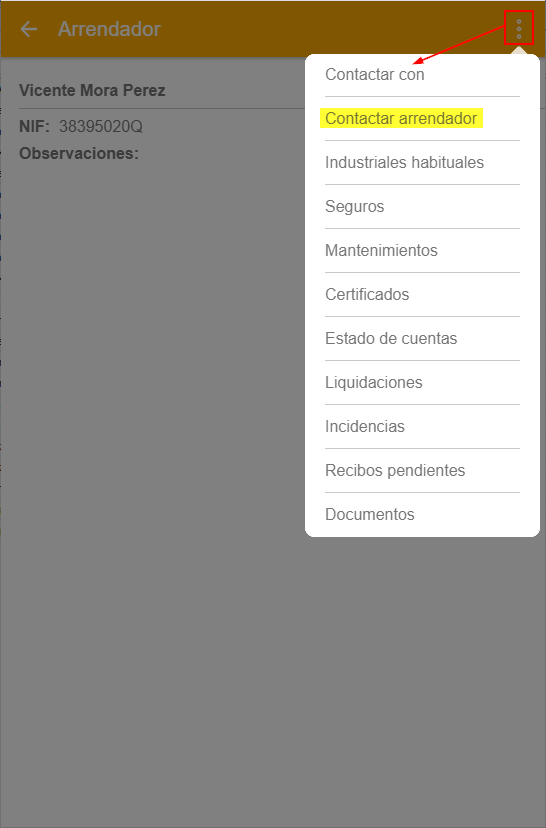 Y para un arrendador es éste. Destacamos en amarillo la opción que es exclusiva de arrendadores.