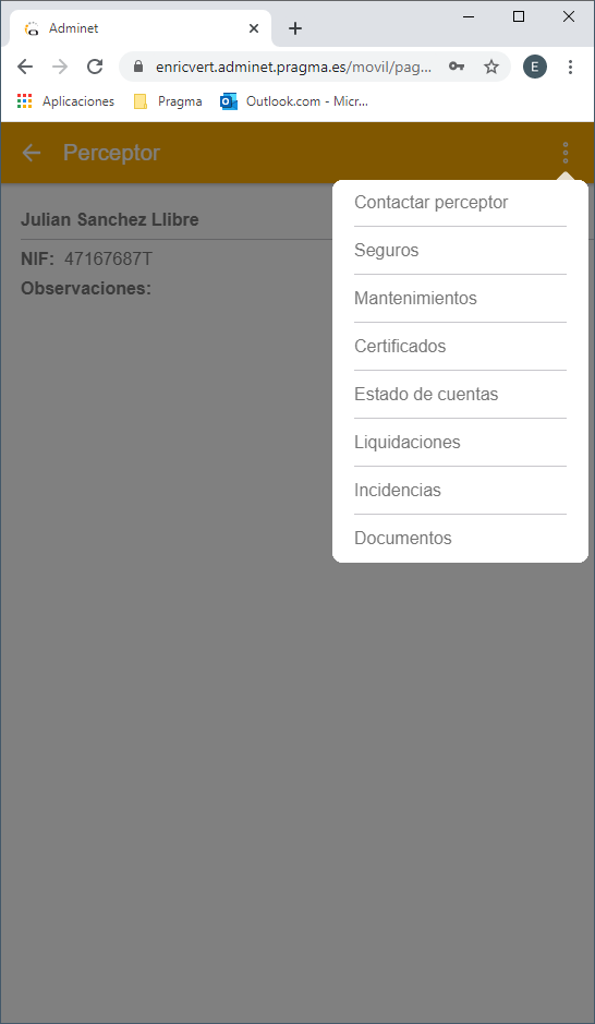 Estas son las opciones de menú que se activan al abrir una referencia de tipo Perceptor de reparto.