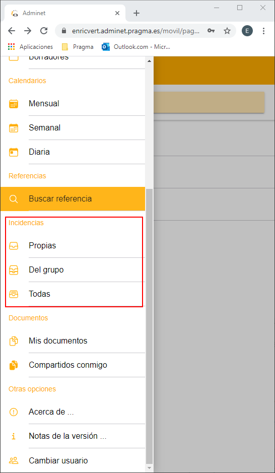Se ha añadido la opción de consultar las incidencias del usuario, las del grupo de trabajo o todas.
